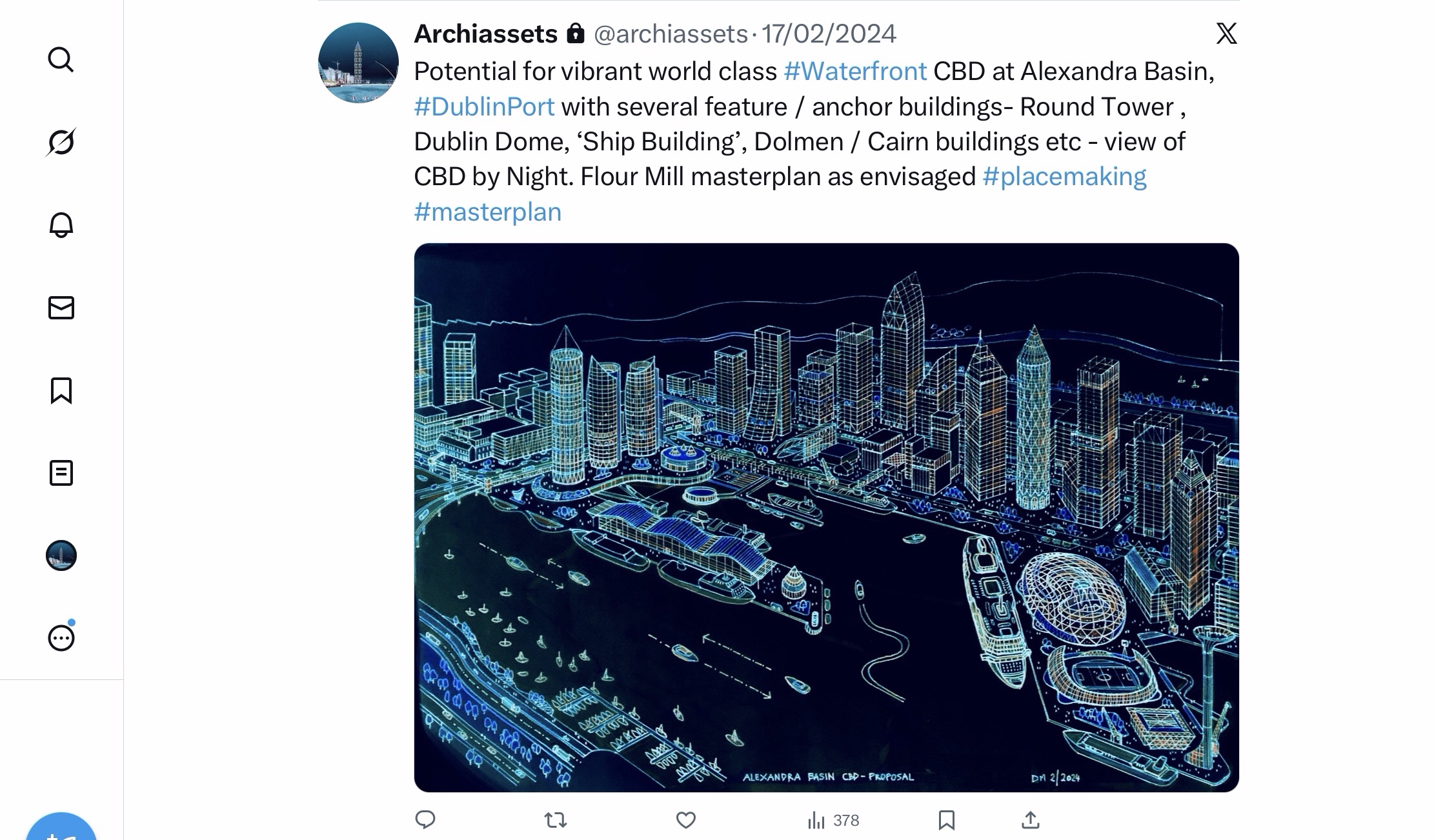 Proposed Mixed Use Waterfront CBD for Alexandra Basin, Dublin Port + Signature Buildings (2/2/2024)