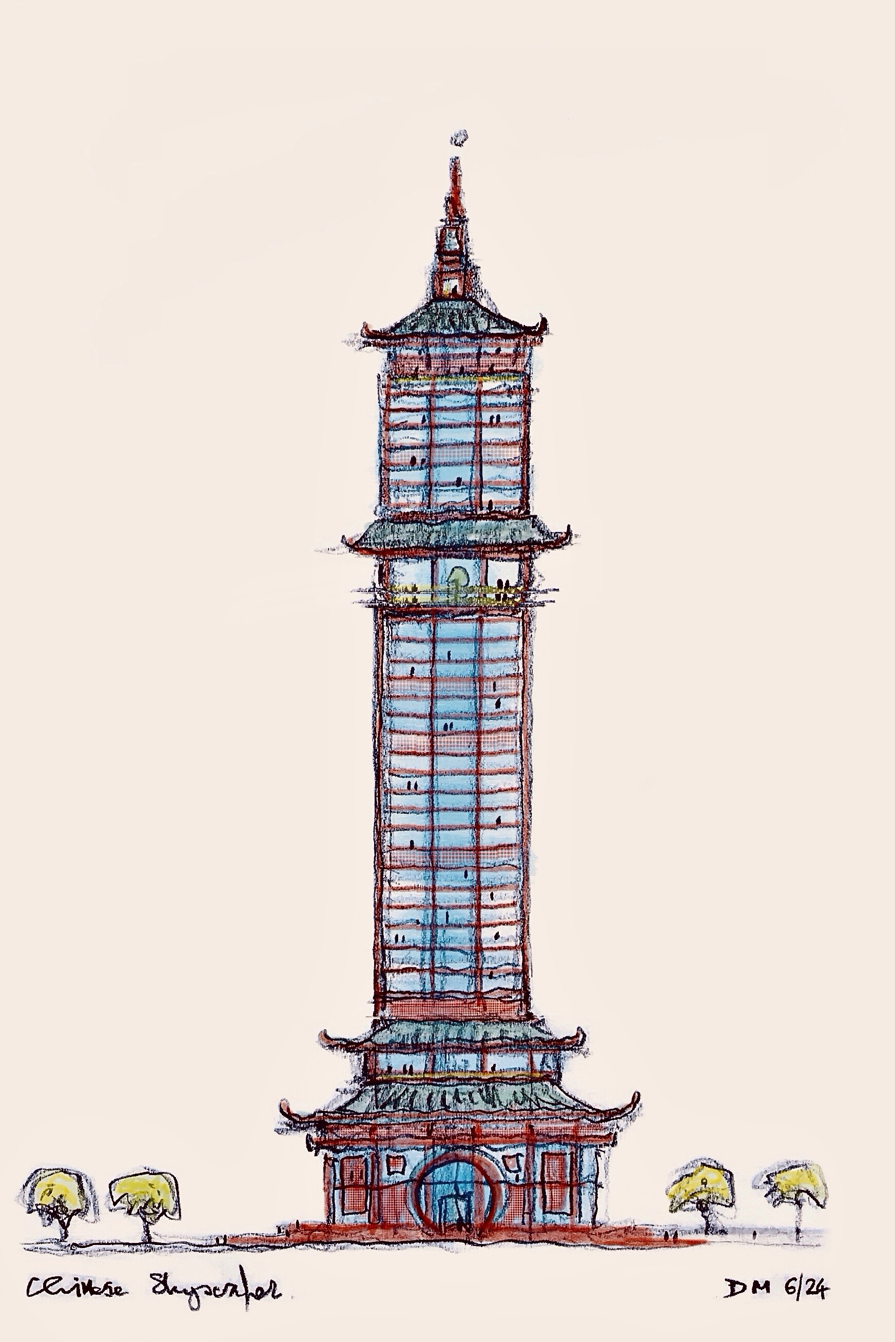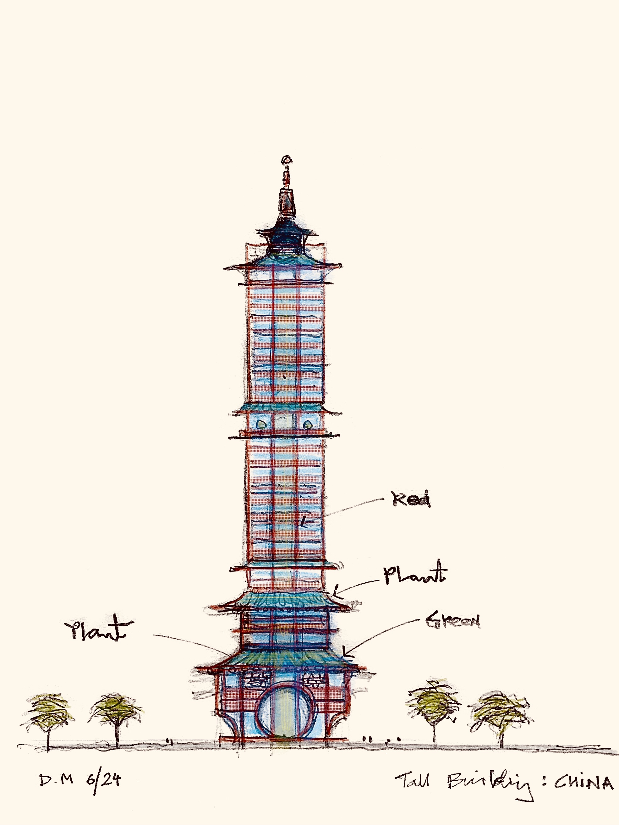 Traditional Chinese Architecture ( Street Level + Sky Gardens ) + Modernist Glazed Skyscraper = Interesting Hybrid
