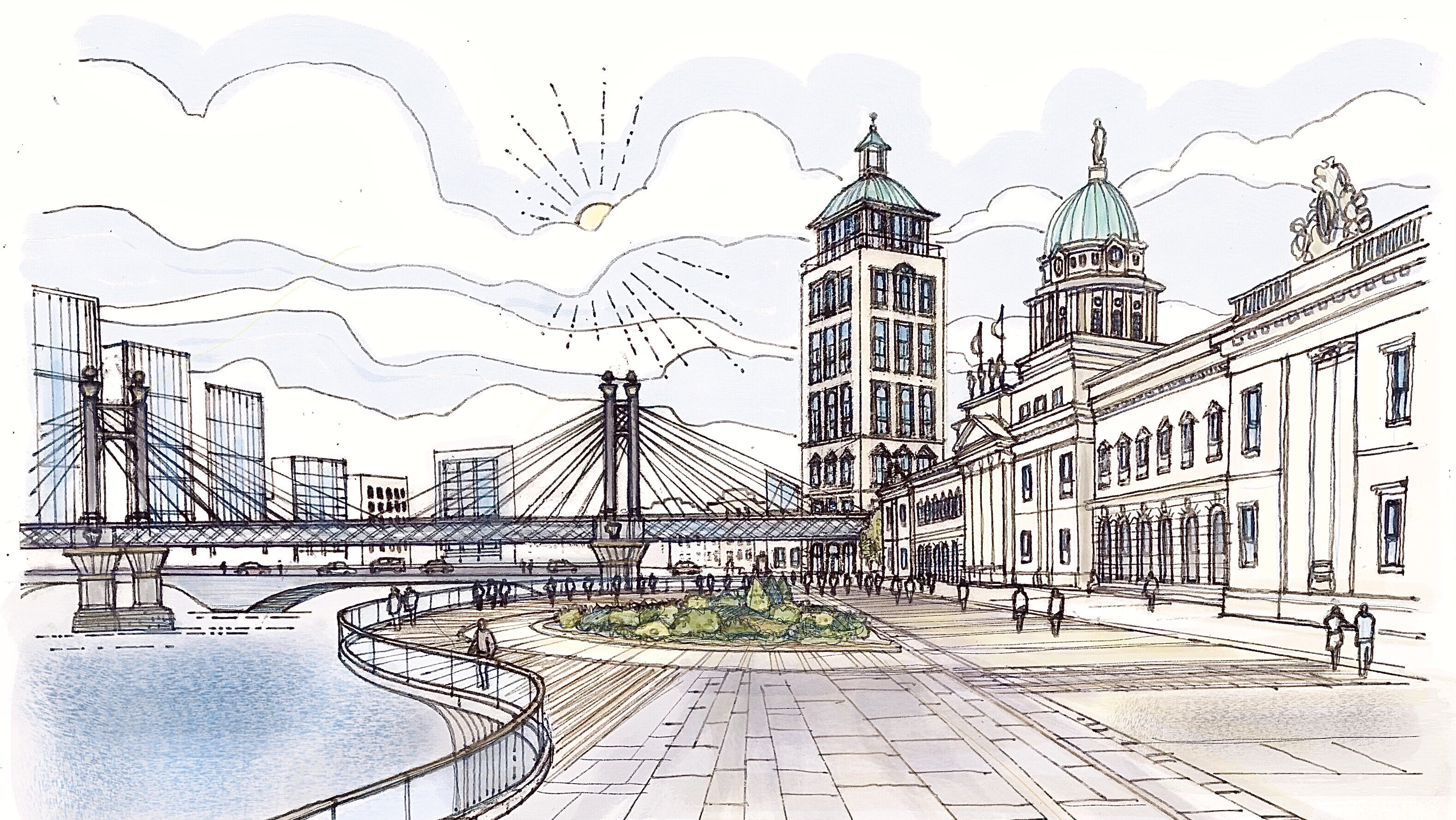 Materials as per Custom House – Portland Stone, Bronze Metalwork, Prepatinated Copper Roof