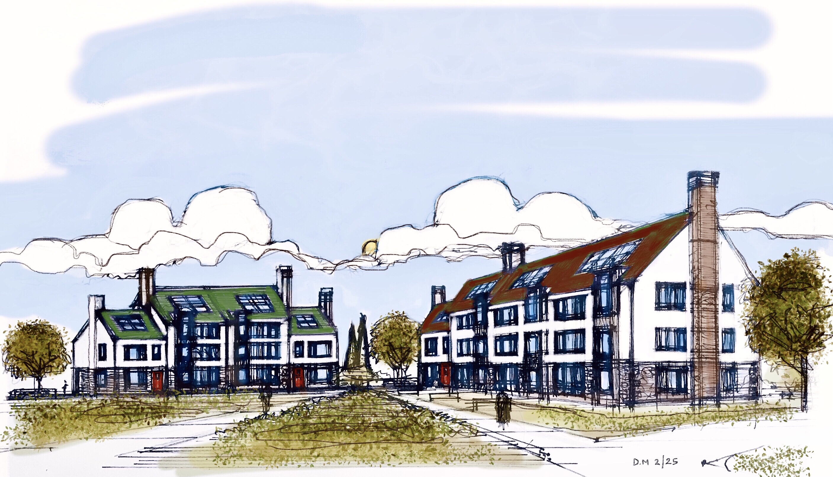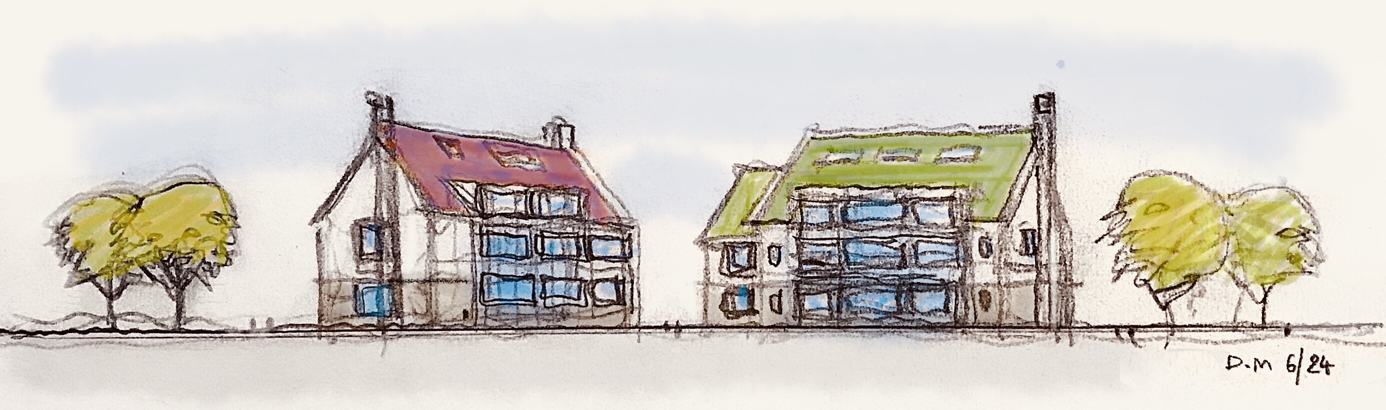 Green Roof : 6 x 1 Bedroom or 2 Bedroom Units + 1 no. 3 Bed Semi D at each end. ExUrban Setting.