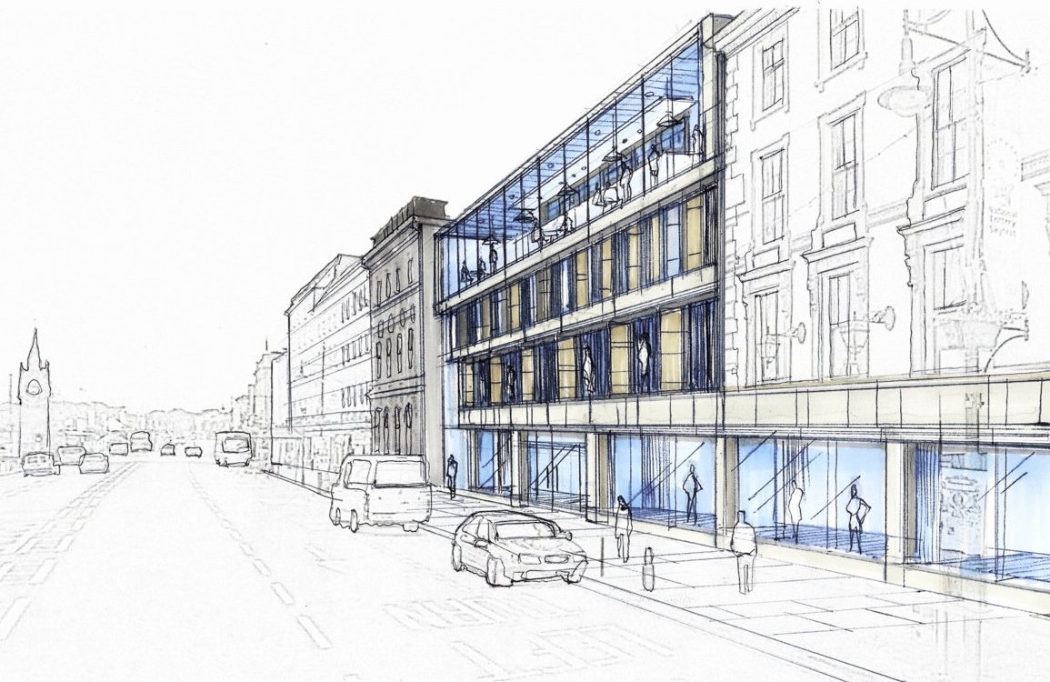 Lounge / Wine Bar Proposal + associated South facing Roof TerracePerspective of Proposal with Indicative Facade treatment and Adjacent Context shown in Indicative formSketch Perspective of Additional Storey + Indicative Facade treatmentSketch Plan + Cross Section illustrating Horseshoe Bar , Lounge Seating layout + Terrace