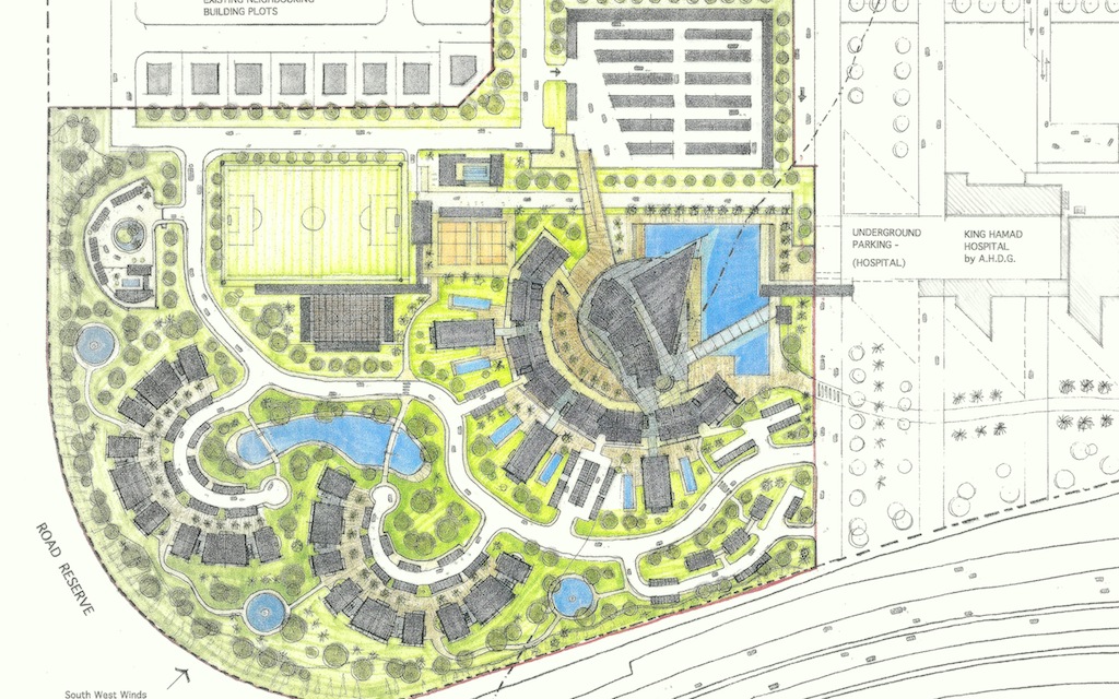 Outline Masterplan Feasibility Studies + Design for new Medical University at King Hamad Hospital Bahrain in association with Royal College of Surgeons Ireland ( BOHAA 2004)