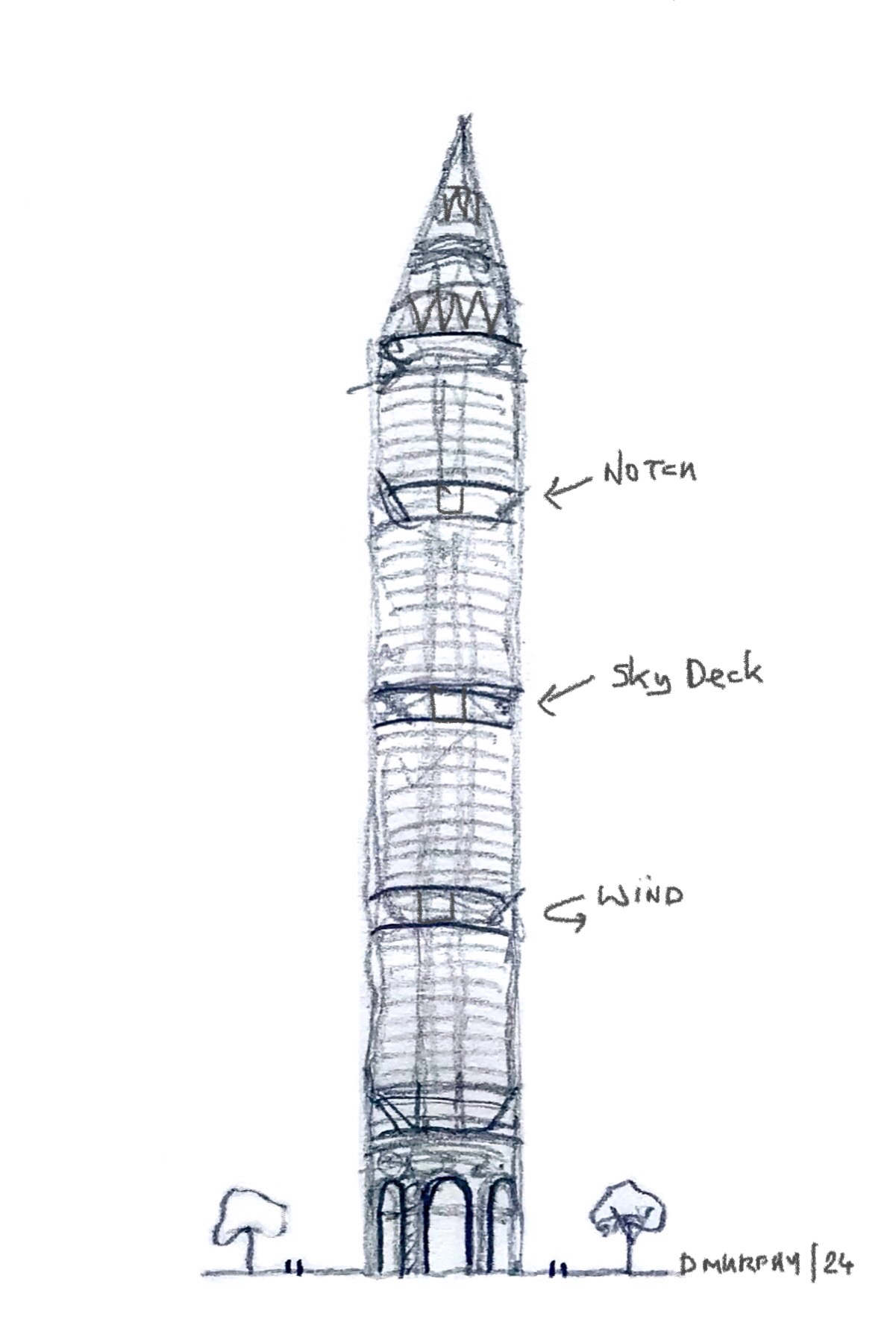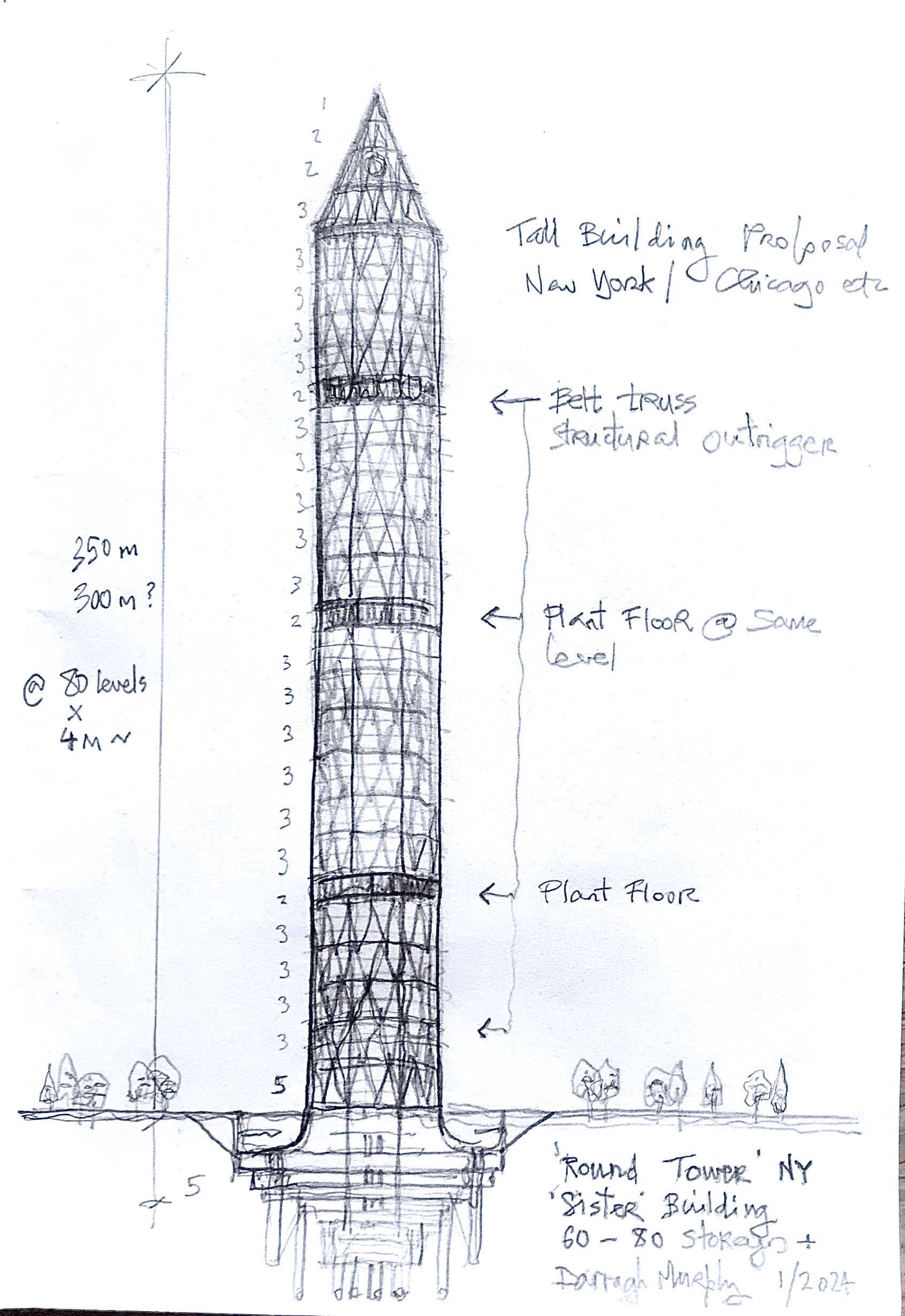 Round Tower Proposal – Tall / SuperTall Iteration – Concept Design Sketches for Wind Load Notching & Sky Terrace Creation