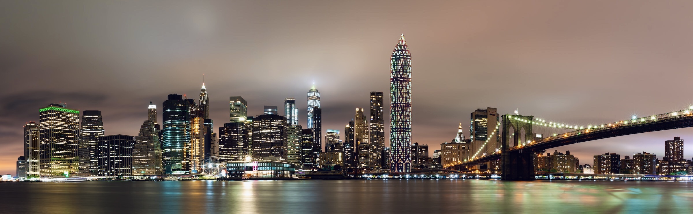 Photo Montage of Proposal within a Potential Lower Manhattan context : Hypothetical and for Illustration purposes: