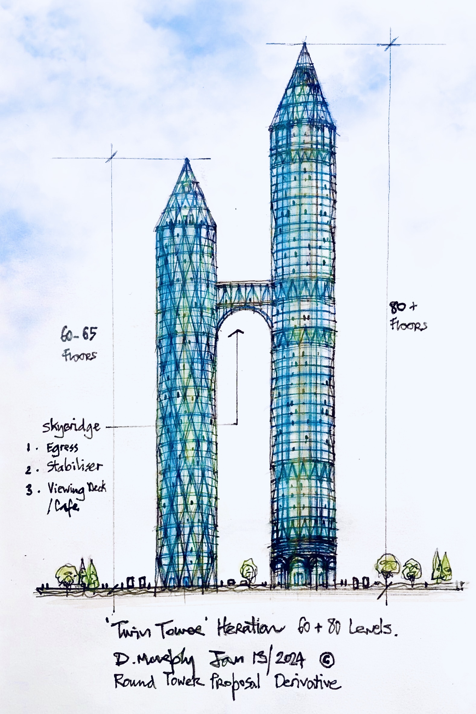 ‘Round Towers’ Twin Building Proposal – Tall + SuperTall Iteration – Concept Design Sketches