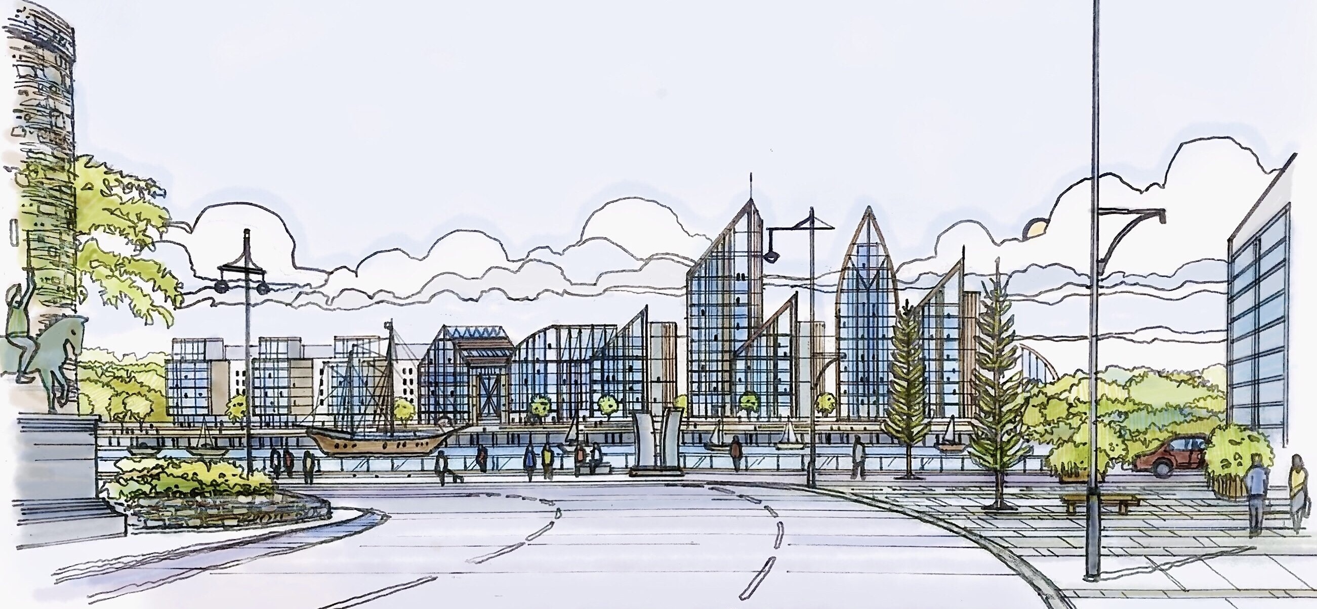 The Proposal was intended to sit within an ensemble of Buildings which together would create a Memorable Skyline when viewed from the various approaches and vantage points within the City. The Architectural treatment to the South Facades is a subtle reference to the Viking and Tudor eras in Waterfords History whilst also providing both a south facing deck area and a solar shading device. The Proposal attempts to contribute to creating a Skyline with a visually attractive silhouette.